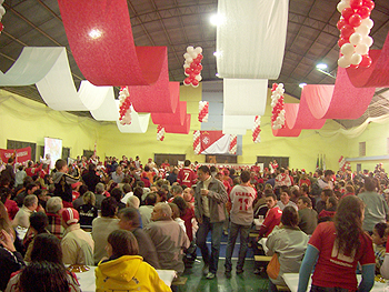 Uma grande festa. Assim foi o evento promovido, na noite da última sexta-feira (18/05), na cidade de Carlos Barbosa, pelo consulado local. Mais de mil pessoas coloriram de vermelho e branco o salão da comunidade de Desvio Machado, no interior do município serrano.