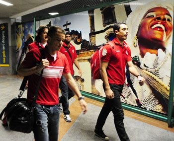Sob uma temperatura amena de 25º C, a delegação colorada desembarcou em Salvador por volta das 20h15min desta sexta-feira para o confronto com o Vitória, no Barradão, neste sábado, válido pela 25ª rodada do Brasileirão. Logo na chegada, cerca de 30 torcedores colorados fizeram festa para os jogadores e integrantes da comissão técnica, como aperitivo do apoio que a torcida gaúcha deve apresentar no estádio baiano.