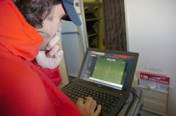 Fernandão concentrado no videogame durante o vôo para o Rio de Janeiro
