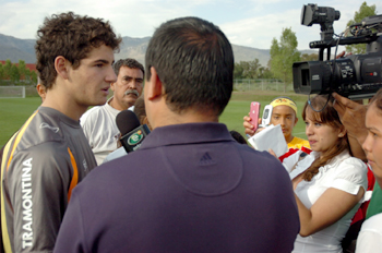 Os mais entrevistados foram Fernandão, Iarley, Pato e Clemer, reconhecidos pelos mexicanos como alguns dos heróis da conquista do Mundial diante do Barcelona, em dezembro. O capitão Fernandão e o atacante Iarley responderam em espanhol fluente, o que agradou ainda mais os jornalistas locais. ?Jogar aqui sempre é difícil, mas esperamos um bom resultado para depois definir no Beira-Rio?, afirmou Fernandão. ?Temos que sair daqui vivos. A altitude preocupa um pouco, mas isso se supera com gana?, disse Iarley.