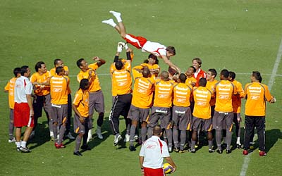 O Internacional realizou o último treino antes da partida diante do Pachuca nesta quarta-feira. O treinamento serviu também para o reconhecimento do gramado do estádio Miguel Hidalgo, local da partida. Os jogadores treinaram por cerca de duas horas em um clima de descontração e confiança em um bom resultado na partida. ?É uma competição muito importante. Pouca gente tem este título. Por isso, temos que atuar com muita raça para buscar este campeonato.Vamos em busca de uma marcação firme no meio para não deixar espaços ao adversário?, disse o volante Edinho.