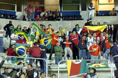 O Inter não esteve sozinho em Pachuca. Cerca de 50 torcedores colorados e mexicanos simpatizantes do campeão do mundo se localizaram atrás de um dos gols e na lateral do campo. Vestida de vermelho e com bandeiras do Rio Grande do Sul e do Brasil, a torcida colorada marcou presença no Estádio Miguel Hidalgo. Já os torcedores do time da casa procuravam fazer bastante barulho principalmente com cornetas, chocalhos e apitos.