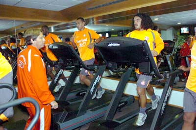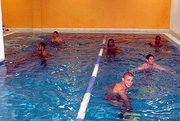 Jogadores que atuaram contra o Pachuca fizeram exercícios na piscina