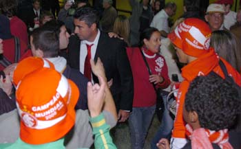 Gallo (de terno preto) recebeu o carinho dos colorados no aeroporto