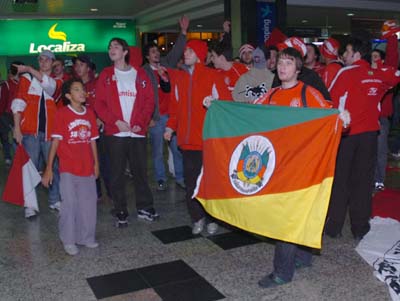 Torcedores recepcionaram a delegação do Inter na chegada à capital gaúcha
