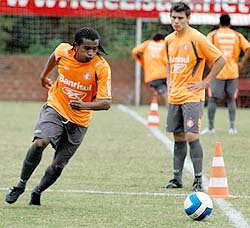 Alex observa Pinga durante treino: Inter pronto para a decisão da Recopa