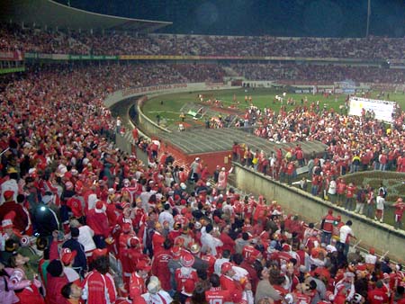 Veio o segundo tempo e a atuação avassaladora do Inter refletiu nas reações da torcida na arquibancada. A cada gol colorado, a empolgação aumentava e a festa no Gigante era do tamanho da vitória por 4 a 0. Com a aproximação do apito final, a torcida passou a gritar os tradicionais ?é campeão? e ?tá chegando a hora?, na expectativa pelo fim do jogo. Já nos acréscimos, o torcedor passou a cantar seu orgulho pela conquista da tríplice coroa, gritando "Internacional: Libertadores, Recopa e Mundial!".