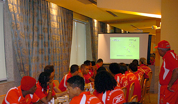 - Durante o almoço desta sexta-feira, os jogadores assistiram a um DVD da partida Flamengo x Botafogo, que foi disputada no dia 27 de maio pela terceira rodada do Brasileirão. Dessa maneira, o grupo colorado pôde observar algumas características do time do técnico Ney Franco.