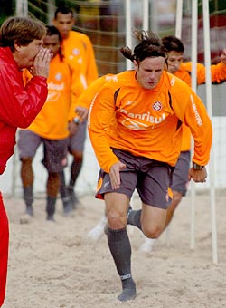 A Semana Gre-Nal começou movimentada para o grupo colorado. O preparador físico Manoel Faleiro comandou uma série de atividades no campo suplementar. Depois de correrem em volta do gramado, os jogadores realizaram exercícios na caixa de areia.