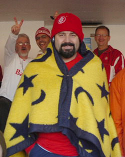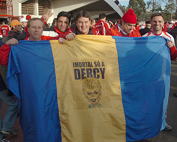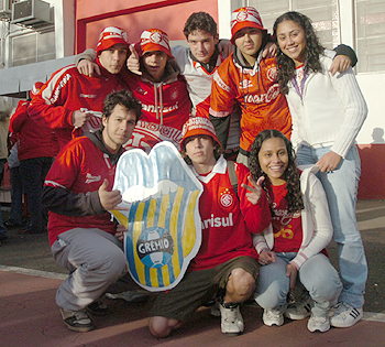 Já dentro do estádio, apareceram as mais variadas faixas provocativas e os tradicionais caixões de papelão com as cores do Grêmio. Nas sociais, o comerciário Mauro Pires estava enrolado em um cobertor azul e amarelo, o mesmo que usou para ir ao trabalho no dia seguinte à final da Libertadores. ?Além do cobertor, eu levei café da manhã para os gremistas: uma caixa de sonhos da padaria?.