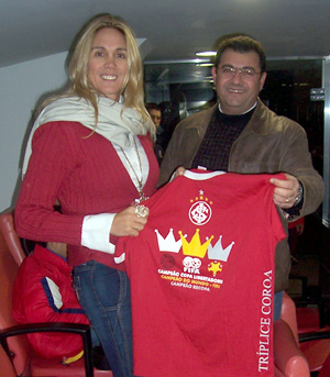 A ex-jogadora de basquete Hortência acompanhou o jogo Inter x Atlético/MG da Tribuna de Honra do Beira-Rio. A 'Rainha das Quadras' - campeã mundial de 1994, campeã pan-americana de 1991 e vice nas Olimpíadas de Atlanta, em 1996 - foi presenteada pelo clube colorado uma camisa comemorativa à conquista da Tríplice Coroa.