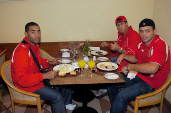 Com um atraso de cerca de duas horas devido aos problemas de tráfego aéreo do país que atingiram quase 40% dos vôos, o Internacional desembarcou em São Paulo por volta das 20h neste domingo para o jogo diante do São Paulo no Morumbi, na terça-feira. A viagem foi tranqüila e o time colorado se deparou com tempo bom e temperatura ao redor dos 12 graus na capital paulista. A delegação composta por 20 jogadores jantou tão logo chegou ao hotel e foi descansar em seguida. Está previsto um treinamento para as 15h30min desta segunda-feira no Pão de Açúcar. Neste treinamento, fechado à imprensa, o técnico Alexandre Gallo deverá encaminhar o time que começa na terça.