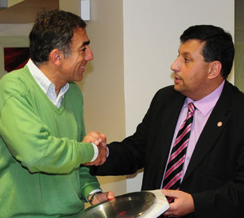 Secretário-geral do Inter, Alexandre Mussói, entrega placa homenageando equipe chilena