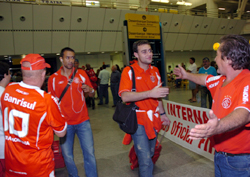 Na chegada no aeroporto de Natal, um grupo de 10 torcedores colorados não se importou com o horário e ficou esperando os jogadores. Com faixas, camisetas e bandeiras do Inter e do Rio Grande do Sul, sonorizados por uma caminhonete que tocava o hino colorado, os gaúchos fizeram bastante festa ao lado do ônibus que conduziu ao delegação. Prometeram apoiar o time com um bom contingente de gaúchos no sábado. O Inter chegou ao hotel localizado na Via Costeira, de frente para o mar potiguar, por volta das 4h e foi direto para os quartos, onde havia lanches para os atletas. Depois da refeição, todos foram dormir.