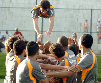 No aquecimento para o treino, o preparador físico Manoel Faleiro orientou uma série de exercícios lúdicos, que fizeram o grupo brincar bastante enquanto se aqueciam. O meio-campista Dionattan, que pode realizar sua estréia com a camiseta colorada, foi alvo de brincadeiras dos companheiros, que o ?batizaram?, jogando-o para cima e o apanhando. No final do treino, uma chuva fina caiu sobre o gramado, refrescando os jogadores.
