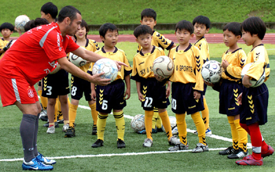 Jogadores em momento de integração com os atletas das categorias de base do Deajeon Citizen