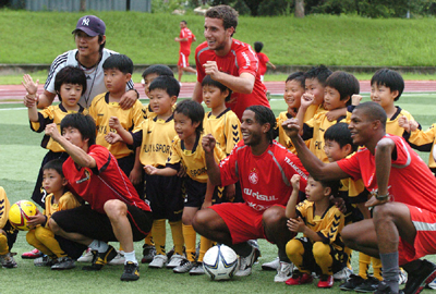 Integração: Jogadores colorados posam para fotos com crianças sul-coreanas