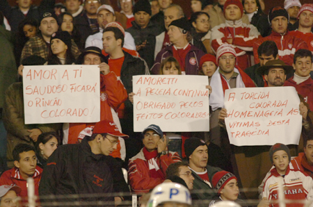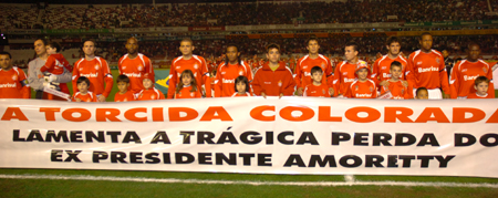 A já tradicional sessão Criança Colorada também teve homenagens ao ex-presidente colorado. Os alunos da Escola de Futebol da Duda carregaram uma faixa com os dizeres ?A torcida colorada lamenta a trágica perda do ex-presidente Amoretty?. Os torcedores presentes aplaudiram a iniciativa.