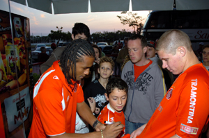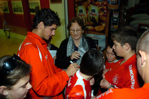 Pinga dá autógrafos para torcedor antes de iniciar viagem para Caxias do Sul