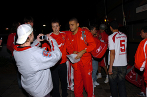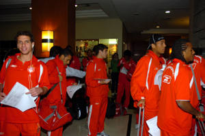 O Internacional chegou a Caxias do Sul por volta das 21h30min desta sexta-feira. Depois de uma viagem tranqüila de aproximadamente 1h30min do Beira-Rio até a Serra, o time ficará concentrado para o confronto diante do Juventude neste sábado, válido pela 13ª rodada do Brasileirão, a partir das 18h10min, no Estádio Alfredo Jaconi. Tanto na saída do Beira-Rio como na chegada a Caxias, houve presença de torcedores dando apoio. Na chegada ao hotel em Caxias, cerca de 20 colorados aguardavam para tirar fotos e pedir autógrafos aos jogadores. Esta é a primeira vez que o Inter vem à cidade desde a conquista do Mundial Fifa em dezembro do ano passado.