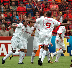 A primeira chance colorada surgiu os 2min20seg, quando Edinho arrancou pelo meio, tabelou com Christian, que deu grande toque para Iarley. O atacante cearense deu o passe preciso para Christian, na área, chutar por cima. O juiz, porém, anulou o lance por impedimento. Aos 7mmin40seg, Pinga deu ótimo lançamento para Iarley que avançou te a entrada da área e concluiu rasteiro no canto para defesa salvadora de Cléber. Na cobrança de escanteio, aos 8min15seg, Pinga chutou forte, o goleiro Cléber tentou cortar, mas não conseguiu: Inter 1 a 0. Gol olímpico de Pinga.