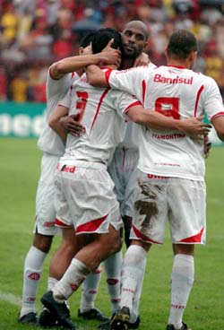 Jogadores comemoram na Ilha do Retiro: Inter apresentou grande futebol