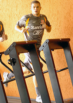 Edinho realiza exercício físico em academia: volante deve voltar ao time contra o Palmeiras