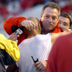 Logo no início do segundo tempo, Alex cruzou e Adriano cabeceou para abrir o marcador. Abel comemorou muito, balançando os braços e gritando olhando para o céu. Quando o autor do gol olhou para o treinador, Abel aplaudiu o jogador, que ainda não havia trabalhado com o técnico campeão do mundo.