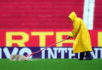 Funcionários do Clube usaram rodos para espalhar a água acumulada no gramado