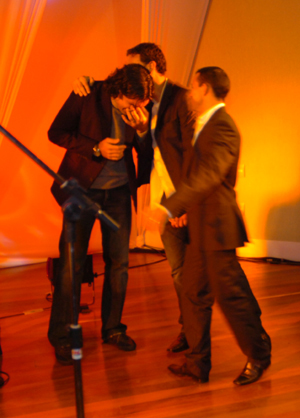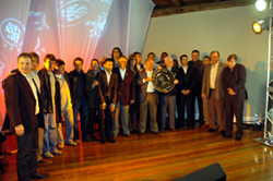O capitão Fernandão, ao chegar, foi logo cercado por dezenas de colorados que queriam um autógrafo ou foto. Solícito, o meia-atacante atendeu a todos com a maior simpatia. Aos poucos os heróis da conquista foram chegando: Iarley, Renan, Ceará, Abel Braga, além de integrantes da comissão técnica. O ex-presidente Fernando Carvalho foi aplaudido quando apareceu no salão de festas pela primeira vez. ?É um título que é motivo de orgulho para todos os colorados. Esta data não vai ser esquecida jamais por nós?, afirmou Carvalho, na chegada.