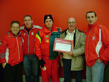 Membros da Associação dos Colorados de Passo fundo (da esq. para dir.): Julio Brid, Edmilson Ceccon, Jaime Bridi (Cônsul), Gelson Pires (vice-presidente de Comunicação Social) e Mano Reschke