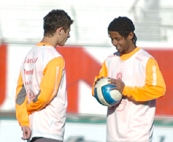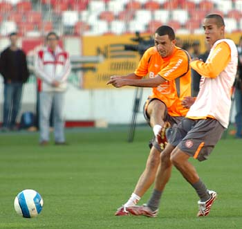Magrão (E) e Derley treinam para enfrentar o Fluminense