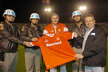 O vice-presidente de Administração Décio Hartmann e o vice-presidente de Marketing Jorge Avancini entregaram uma camiseta do clube ao comandante do BOE, Tenente Coronel Jones dos Santos. O sub-comandante João Godoi e o Major César Silva também representaram o BOE na homenagem.