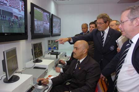 Dando continuidade a visita, a comitiva da FIFA foi até a central de monitoramento por câmeras, onde pôde conhecer o moderno sistema de segurança do Beira-Rio. O Especialista em Estádio e Assuntos de Segurança, Walter Gagg, demonstrou bastante entusiamo com a tecnologia empregada no monitoramento dos torcedores dentro e fora do estádio. Depois de conheceram o gramado do Gigante, a visita foi encerrada no vestiário profissional por volta das 11h20min.