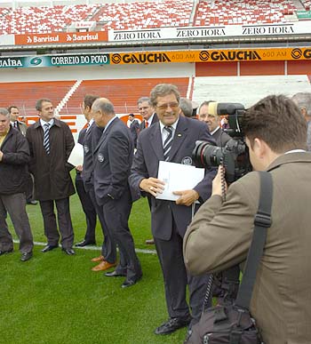 A comitiva da FIFA que está avaliando as cidades candidatas a sediar a Copa do Mundo de 2014 visitou o Beira-Rio na manhã desta quinta-feira. Os representantes da entidade máxima do futebol conheceram a estrutura do estádio colorado e obtiveram informações sobre o projeto de remodelação do Complexo. "O projeto do Beira-Rio é bom e atende às exigências da FIFA. Cada cidade apresenta um único estádio no caderno de encargos, e este estádio em Porto Alegre é o Beira-Rio", afirmou o presidente da CBF, Ricardo Teixeira.