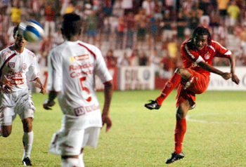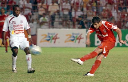 A equipe pernambucana tentava pressionar, mas o sistema defensivo do Inter estava bem posicionado. Só faltava encaixar o contra-ataque fatal. E ele quase veio aos 22min30seg quando Christian recebeu bom passe de Adriano, na área, e quando iria concluir, a zaga conseguiu cortar a bola.