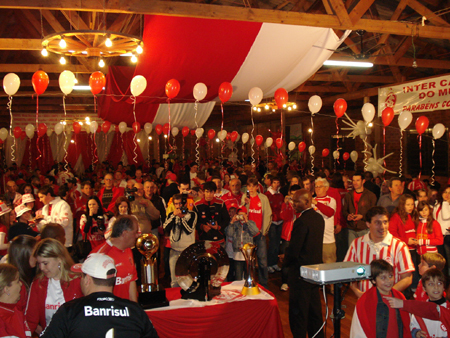 O município de Getúlio Vargas promoveu na última sexta-feira (31/08) um grande encontro de colorados da região. Com a ilustre presença das taças da Libertadores e do Mundo, mais de 850 pessoas tiveram a oportunidade de tirar fotos, cantar e celebrar o amor ao clube. O Internacional foi representado pelo diretor de Comunicação Social Luis Carlos Hauber, o gerente de marketing Júlio Emmel e o gerente consular Adão Célio Pereira. Craques do passado também marcaram presença, como Claudiomiro, Milton Vergara e Élton.