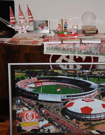 Quadro cedido pelo Inter se junta aos outros souveniers que o general ostenta em seu gabinete