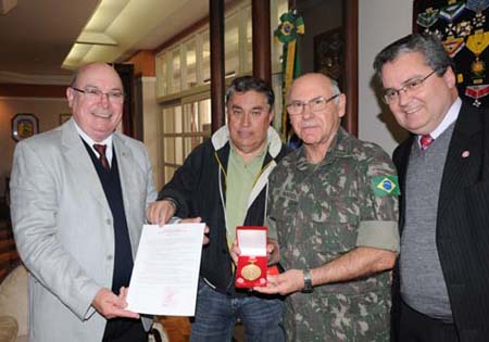 José Carlos de Nardi exibe a medalha presentada pelos dirigentes colorados