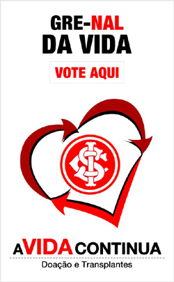 O Internacional está ao lado da campanha de conscientização para a doação de órgãos. A ONG Via Vida está organizando uma ação em conjunto com a dupla Gre-Nal. Os torcedores colorados poderão participar e declarar publicamente que são doadores de órgãos e vencer os rivais nessa luta pela vida de milhares de pessoas. Basta clicar e votar pelo link http://www.viavida.org.br/. Os resultados serão divulgados no dia 7 de outubro no mesmo site.