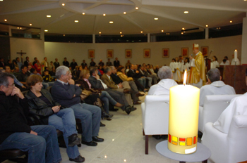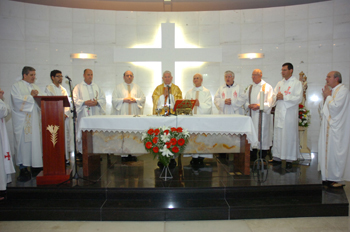Sacerdotes durante a missa na Capela Nossa Senhora das Vitórias