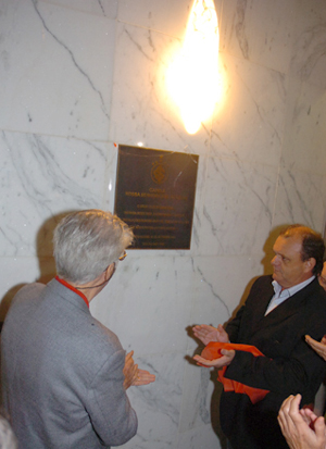 Vitorio Piffero (D) durante descerramento da placa de inauguração