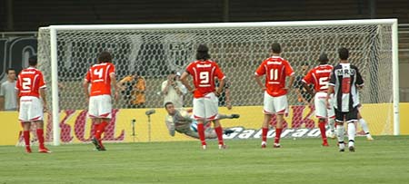 Aos 37min20seg, Marcinho chutou forte, Renan defendeu, mas no rebote Sorondo derrubou o atacante na área: pênalti. Aos 38min25seg, Marinho cobrou e Renan defendeu, salvando o Inter. Grande Renan!!!