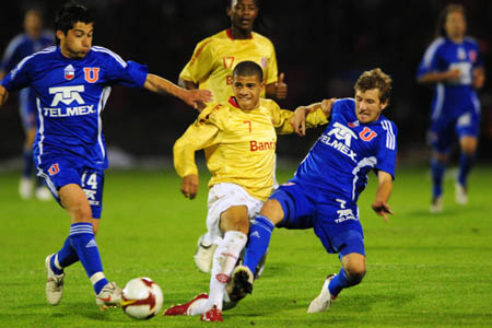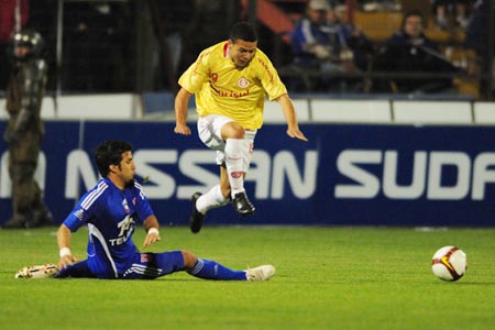 Como havia empatado em 1 a 1 na partida de ida, o time colorado precisava marcar gols para continuar na Sul-Americana. A partida começou bastante movimentada. Cada palmo do campo era muito disputado por ambos os times. Aos poucos, o Universidad impôs seu esquema, neutralizando o Inter no campo de defesa. O time colorado tentava ameçar nos contra-ataques, mas quase sempre esbarrava na forte marcação chilena.