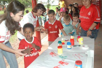 O Projeto Saci Colorado também realizou atividades. As educadoras sociais pintavam as mãos das crianças com tinta e assim montavam um painel chamado de ?Mãos do Futuro? para cada creche. Em quatro dias de atividades recreativas, de lazer, de educação e cultura, quase três mil crianças e professores aproveitaram a 6ª edição da Semana da Criança no Parque Gigante. O clube colorado agradece aos profissionais envolvidos e aos colaboradores. Esta é mais uma das iniciativas sociais do Internacional, em parceria com a SMED.