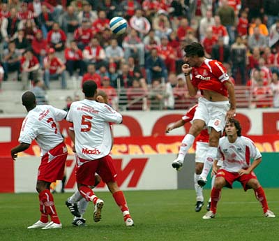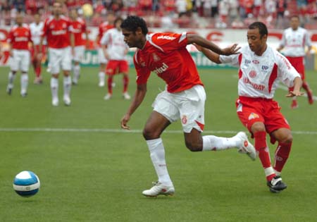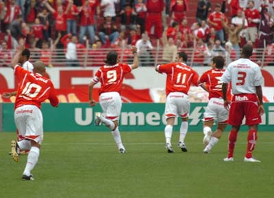 Aos 5min, o Inter avançou com boa troca de passes pelo meio-campo até a bola chegar em Jonas, na direita, cruzar e o goleiro Sérvulo defender. Um minuto depois, o Inter chegou ao primeiro gol. Wellington Monteiro cobrou falta da intermediária e Fernandão cabeceou com estilo no canto: 1 a 0. Nas arquibancadas a torcida gritou ?Uh, Fernandão, Uh, Fernandão?. Foi o 63° gol com a camisa colorada do maior artilheiro do atual grupo.