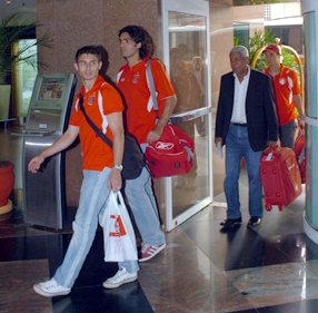 A delegação colorada chegou à capital paulista por volta das 16h30min desta sexta-feira, depois de um vôo tranqüilo e praticamente sem atrasos. O Inter desembarcou sob forte calor (por volta dos 33 graus) e muito sol. Jornalistas paulistas e gaúchos estiveram presentes na chegada colorada. Magrão, o volante que atuou no Corinthians antes de ser contratado pelo Inter, foi o mais procurado, principalmente pelos repórteres paulistas.