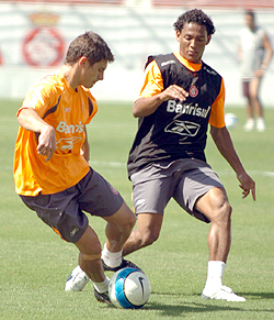 Marcão (E) ao lado de Índio: zagueiro pronto para voltar ao time