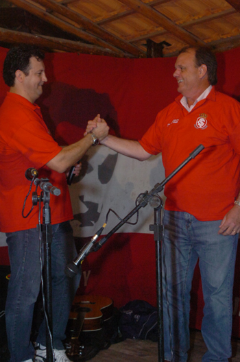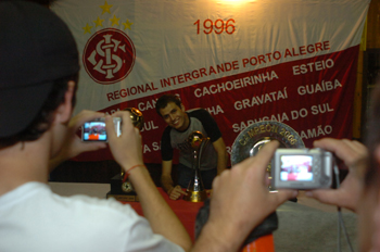 Em mais uma grande celebração ao Inter, na última sexta-feira (19/10), a cidade de Gravataí, na região metropolitana de Porto Alegre, emocionou os colorados presentes. O evento organizado pelo consulado do município contou com os jogadores Sorondo e Roger, que atenderam aos torcedores nos pedidos de autógrafos e fotos. As taças da Libertadores, Mundial e Recopa também eram alvo, já que todos queriam ser fotografados ao lado delas e guardar pra sempre a inesquecível lembrança.