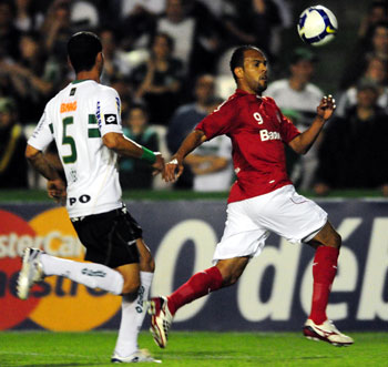Inter, de Índio (E), lutou mas levou os gols da derrota no segundo tempo